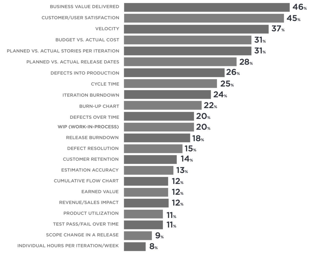 Vamos con cómo estamos midiendo el éxito en la implantación de la Agilidad. Y los 3 métodos más usados son satisfacción del usuario, Valor entregado y… Velocidad (por qué muchos piensan que hablar de velocidad no es Ágil).