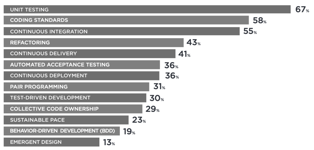 El Testing Unitario sale en primera posición, suena bien, aquí lo raro, o lo que da más pena es que TDD sale mucho más abajo.
