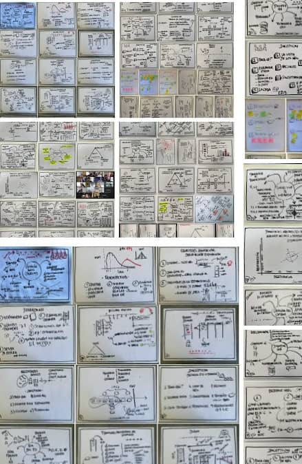 Desde que hace años dejé el PowerPoint, cada año dibujo mucho, pero mucho, y desde que se disparó el mundo online más, para transmitir ideas y co-crear con la audiencia sin seguir el guion cerrado de unas diapositivas.