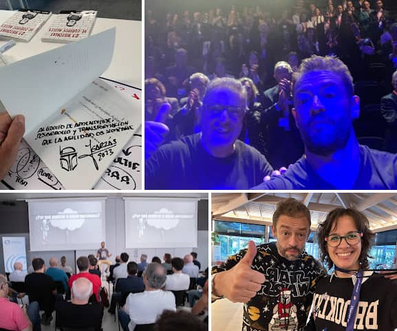 En la foto, algunas de ellas, la de 20 aniversario de LedaMC, en la que compartí escenario con Domingo Gaitero, también foto de la Keynote que di por el día de la Programación, organizada por el Colegio Oficial de Ingenieros en Informática de la Comunitat Valenciana, firmas de libros y con Elena en la Keynote de Facephi.
