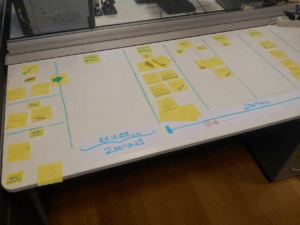 Foto del primer tablero de gestión visual que usamos para auto-gestionarnos. Foto para museo.