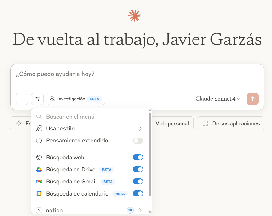 En Claude es ahora mismo la opción más fácil. Es trivial, está integrado, solo hay que activar la conexión, no necesitas ni usar MCP.